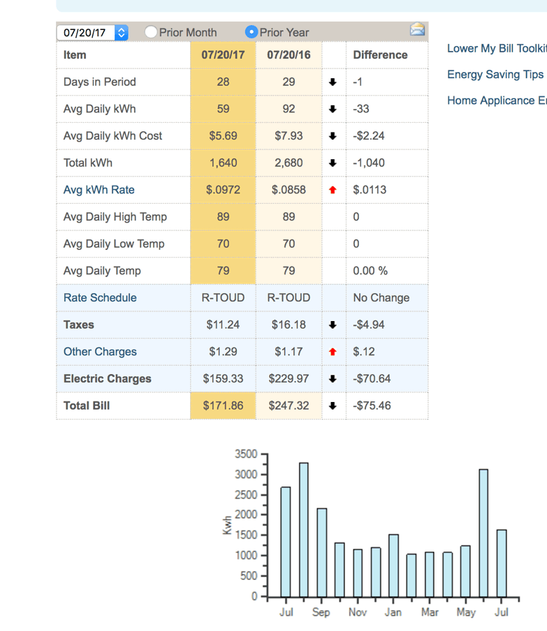 Just wanted to show you the significant decrease in our power bill, (see graph below) which we believe is because of our new windows. We cannot believe how much cooler our house is staying on the inside from how it has typically been.